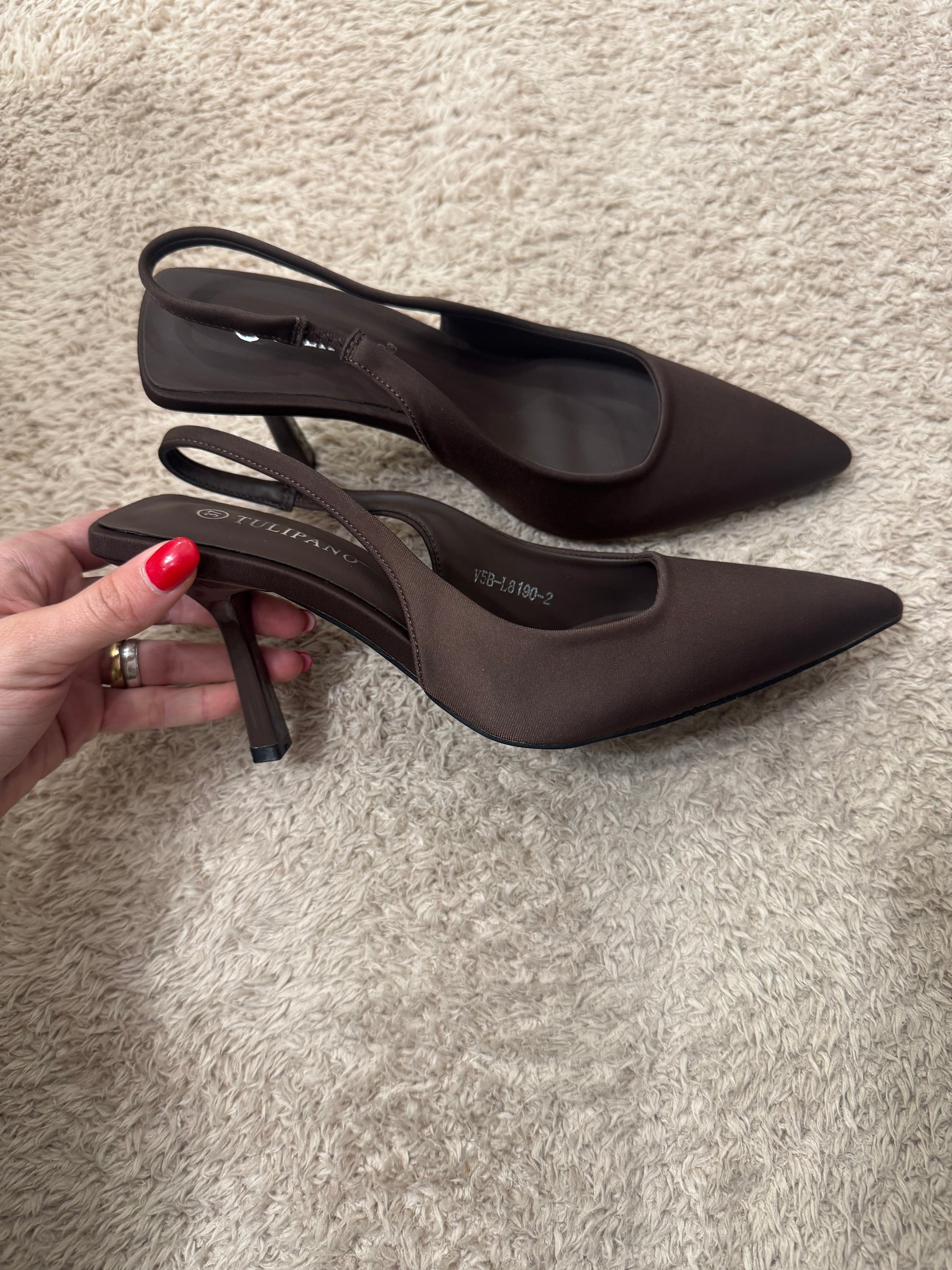 Queste Slingback Brown presentano un elegante design a cinturino che offre un maggiore supporto e comfort per il piede. La loro costruzione di alta qualità garantisce una durata e una resistenza eccellenti, mentre il loro stile versatile le rende adatte a ogni occasione. Scegli le Slingback Brown per un look sofisticato e confortevole.
